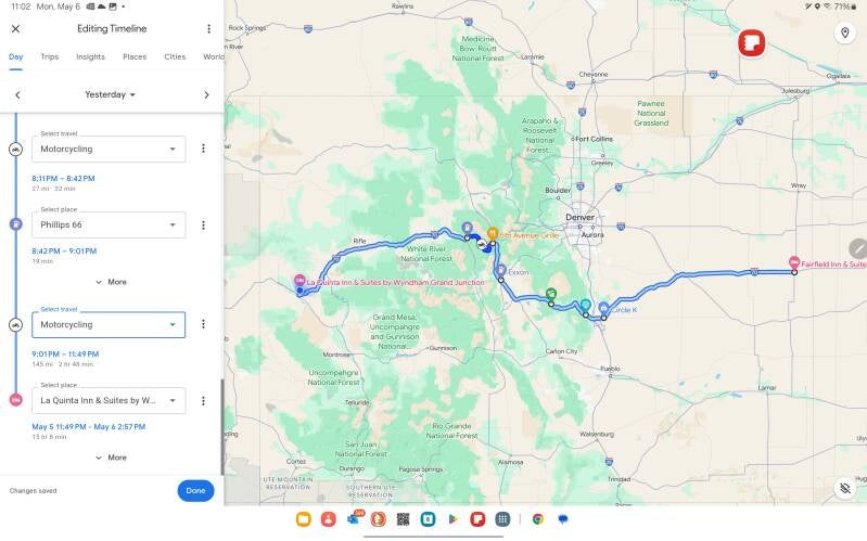 We departed on Sunday, May 5, 2024 to navigate to Grand Junction, CO. Temperature will be in the 60's.
