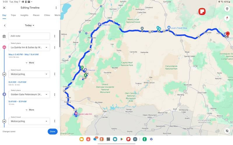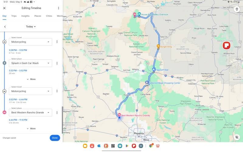 What a ride today! We left Jacob Lake at 9:30am. We went through multiple mountain ranges. With a lot of twisties and great riding environment. A motorcycle riders dream ride. We drove the Sedona twisties and the Prescott twistees. Drove through Cliff dwellers AZ and saw the beauty of a canyon.
