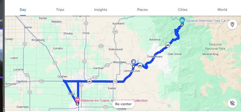 Day 21 - Travel from Sequoia (Tulare CA) to Fisherman's Wharf San Francisco