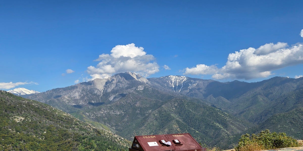 We left from Yosemite at 10:18am and arrived at Kings Canyon at 2:55pm . We drove through Kings Canyon via highway CA180 directly into Sequoia National Park. We decided to do a drive by to see what we could see. When entering Kings Canyon we had another mountain driving experience. A lot of twisties and steep inclines and descents. We had to take our time due to the severity of the curves. To get to Kings Canyon we had to enter the Sequoia National Forest. The views were spectacular from the roadway. We only got a few pictures because we were driving quit a bit today.