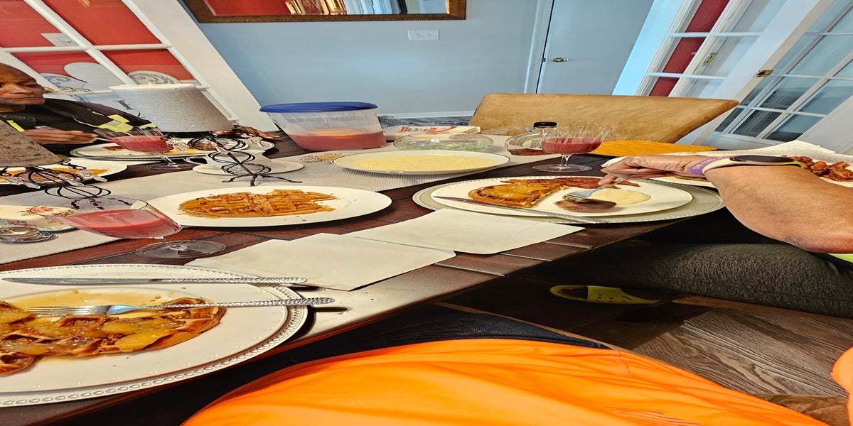 We left Sharon's house in the morning and traveled throulgh the back way to get to Marsha's house. Lots of fun twistys! Thank you Sharon for taking us that way! We arrived at Joyner and Marsha's at 9:40am. Breakfast was served. Joyner had to work, but Marsha had prepared a meal fit for 2 kings. We had grits, fried apples, sausage, bacon, fruit cinnamon chips Belgian waffles and some grape/orange juice. All was soooooooo good! One thing for sure, every stop we made with family, food was ready and plentiful. Thank you family for closing off this journey in a bang up way. I hope the weight we lost will still show. Great food, great conversation, great times and great relaxation!
