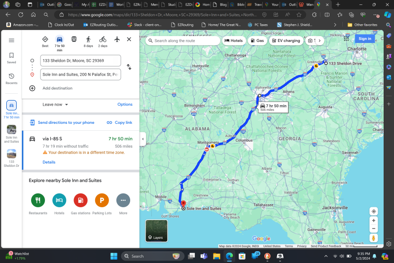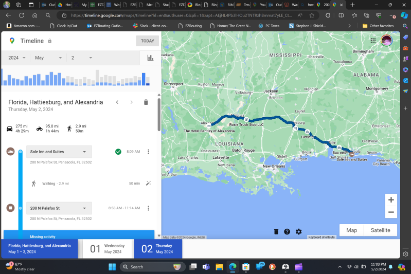 Day 2 - From Pensacola, FL to Alexandria, LA