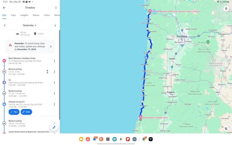 We arrived at our hotel in Tulare at 7pm. Long day of riding, but filled with a lot of beauty. We look forward to going back to Sequoia tomorrow to venture into the forest. I found out when I arrived that the hotel is 1hour and 50 minutes from the park. Oh well, we are here and it is a pretty nice updated hotel. The name is Hillstone Inn Telare.